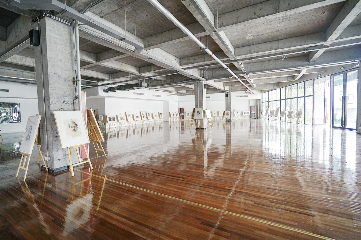 银湖校区集画室、教室、宿舍、地下停车场、餐厅、超市、美术馆、图书馆、健身中心、拳击馆、校区背后天然山体景观为一体的4万多平的建筑综合体。
